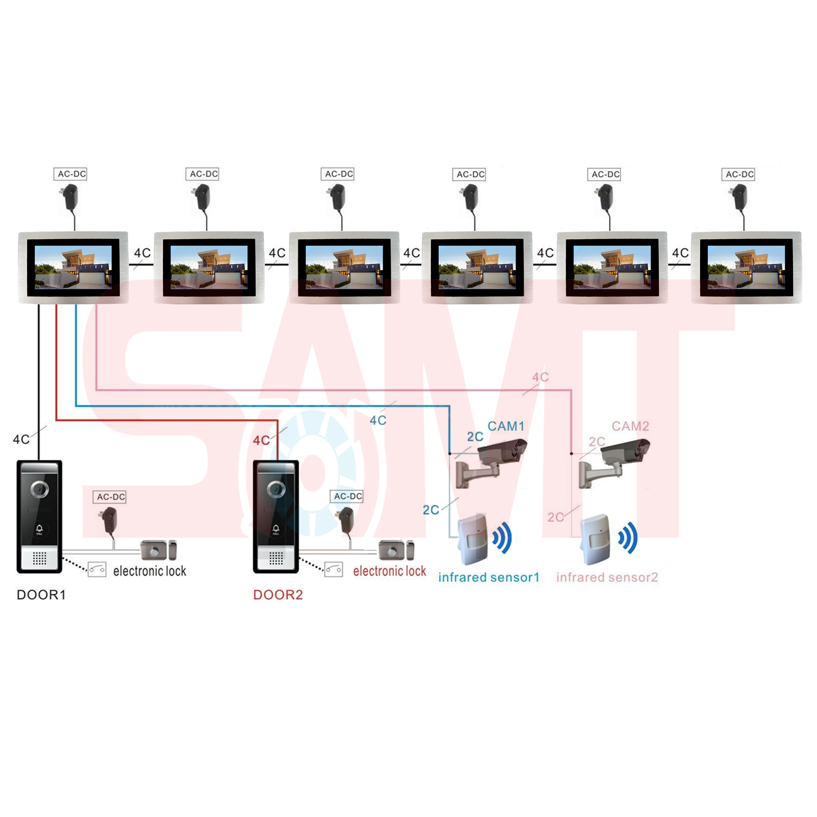 - Connect up to 4 internal monitors in one house!