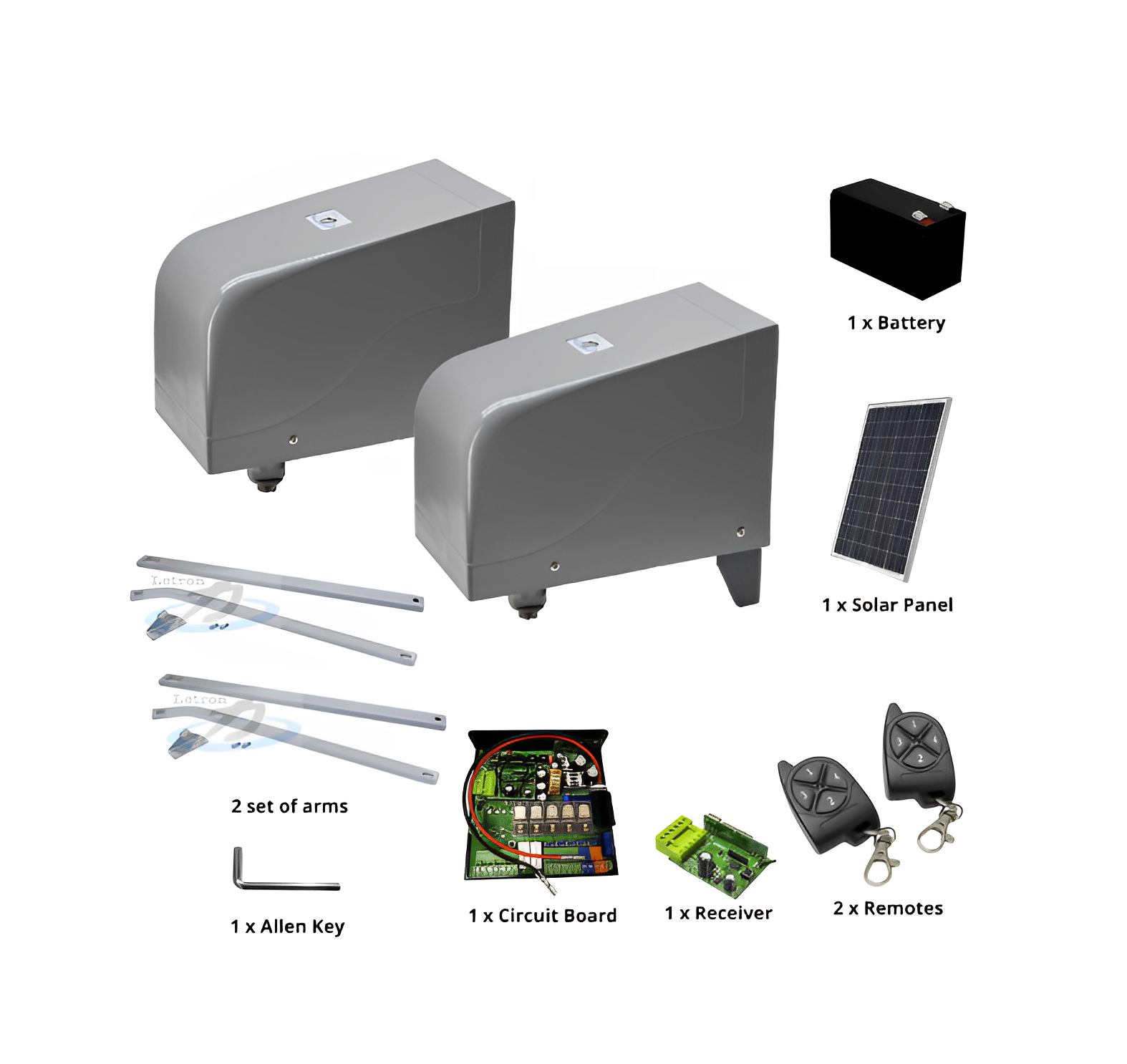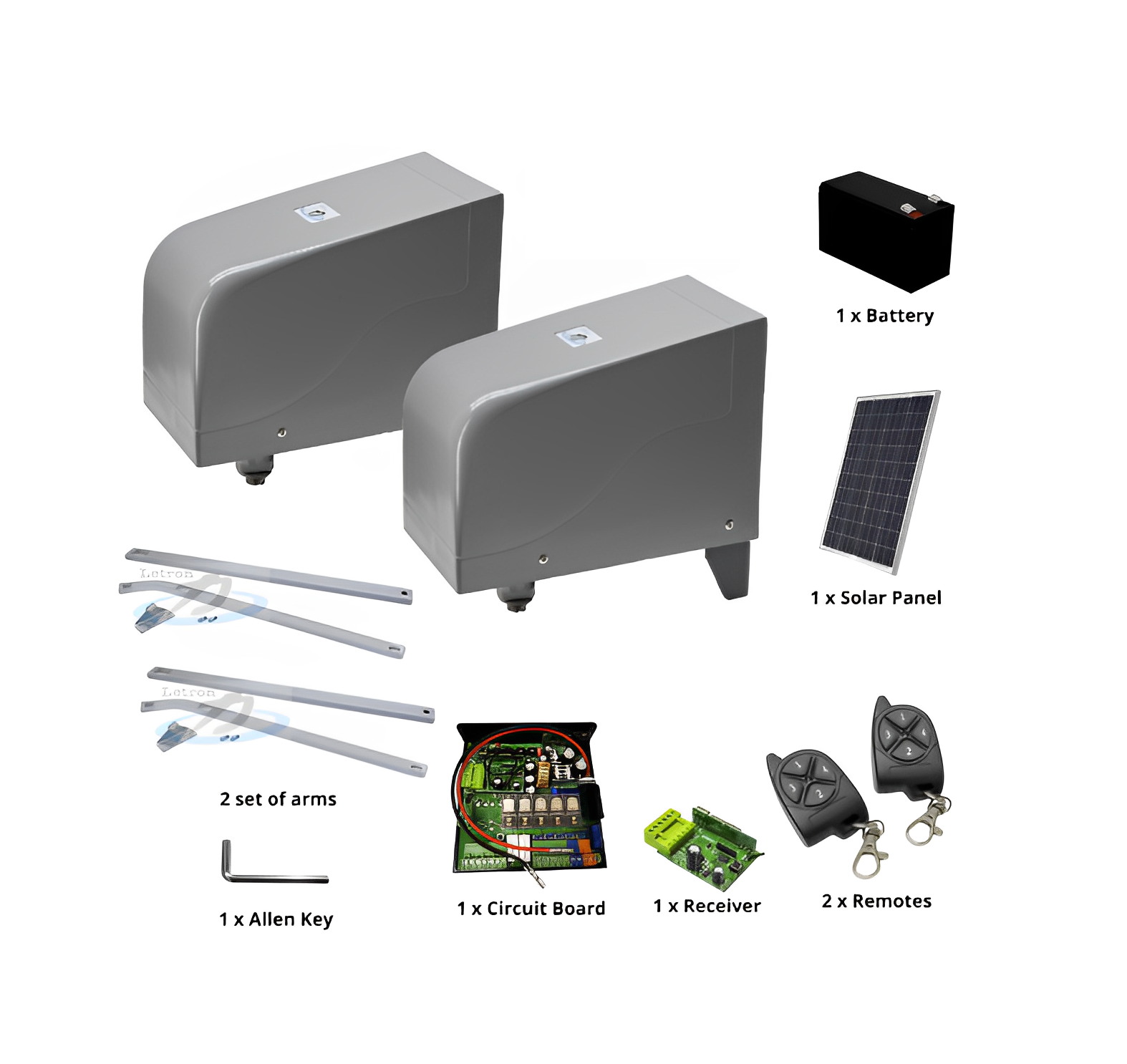 The Letron Swing Gate Opener DC Double Gate kit SW850 is the perfect solution for any homeowner looking to add convenience and security to their home. This easy-to-install system will make opening double gates quick and effortless with a press of a button.